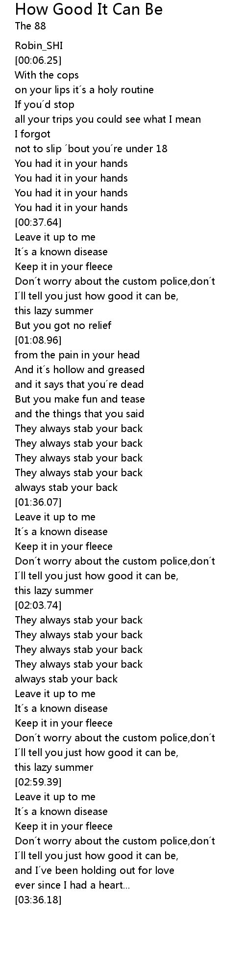 | [01:01.14] | I´ll tell you just how good it can be, |