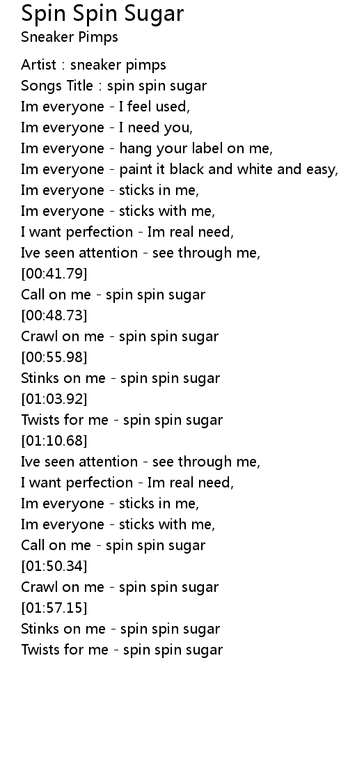 | [01:51.28] | Crawl on me - spin spin sugar |