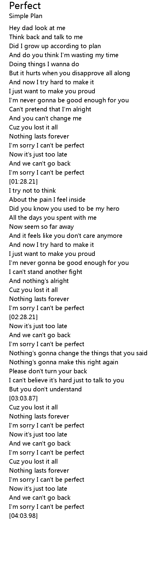 I'm sorry I can't be perfect |
