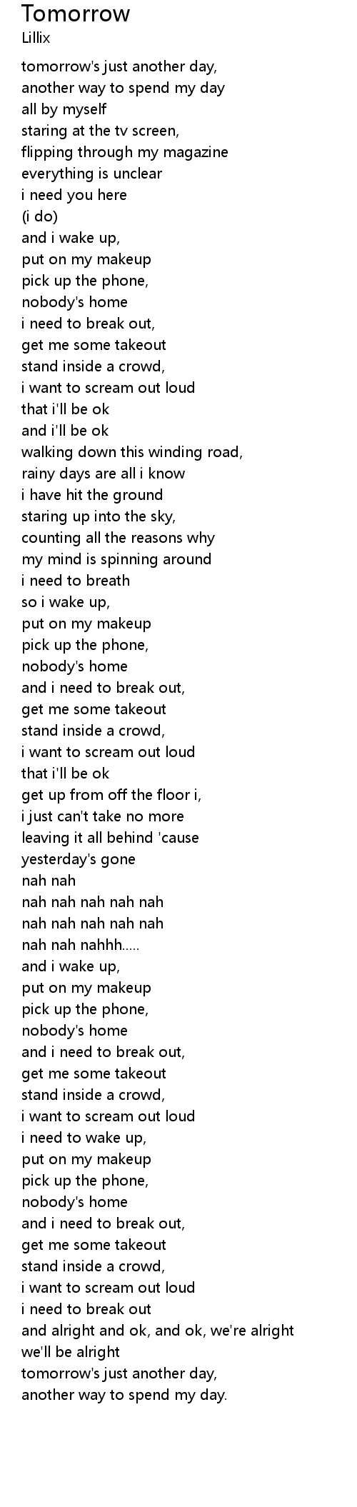 tomorrow's just another day, |