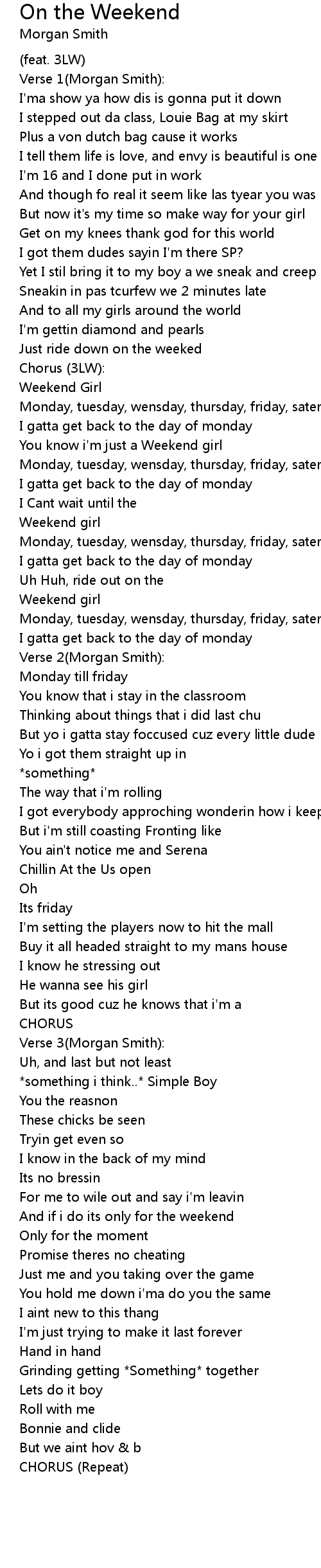 Monday, tuesday, wensday, thursday, friday, saterday, sunday, |