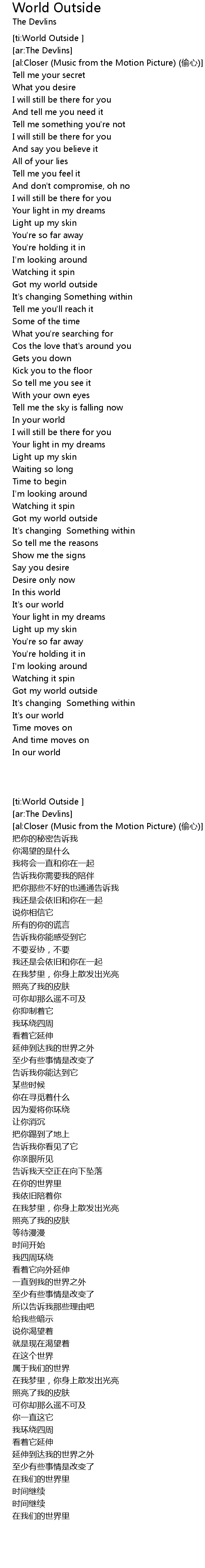 | [ti:World Outside ] | |