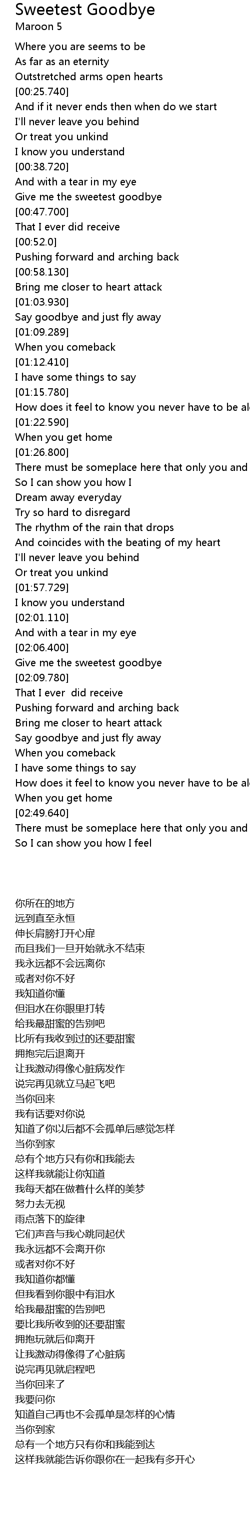 | [00:45.150] | Give me the sweetest goodbye |