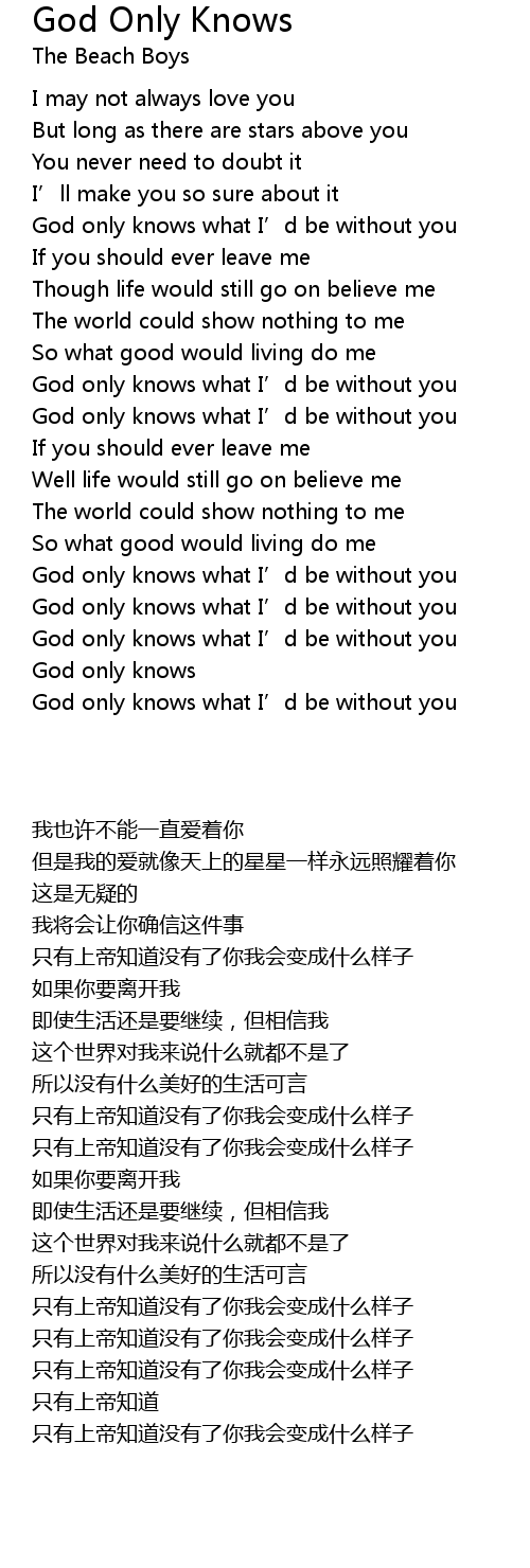 | [00:35.030] | God only knows what I' d be without you |