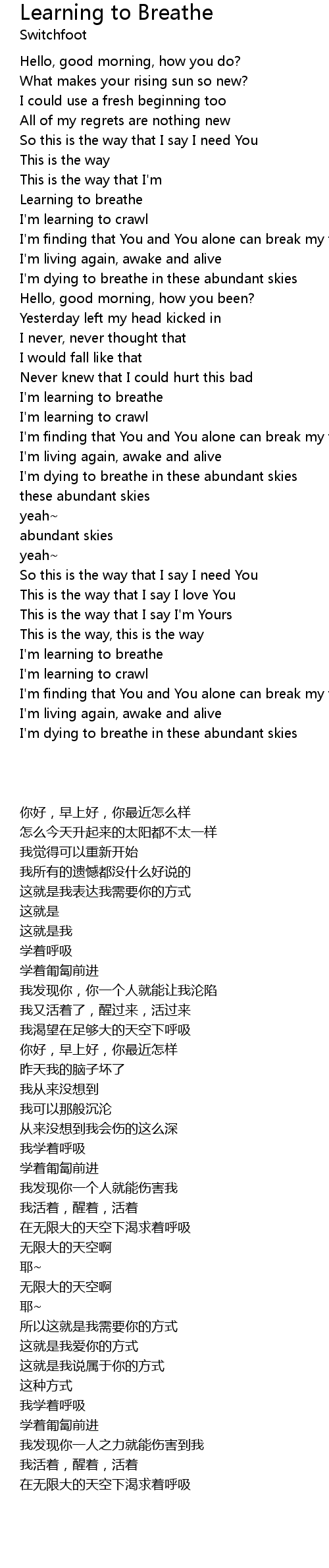 Learning to Breathe Lyrics