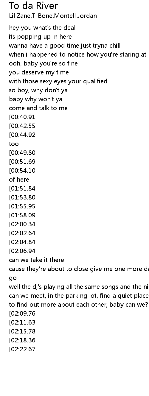 | [01:47.56][00:54.10] | ooh, your making me feel so sexy baby we should get up out of here |