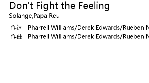 | [00:00.000] | 作曲 : Pharrell Williams/Derek Edwards/Rueben Nero/Solange Knowles |