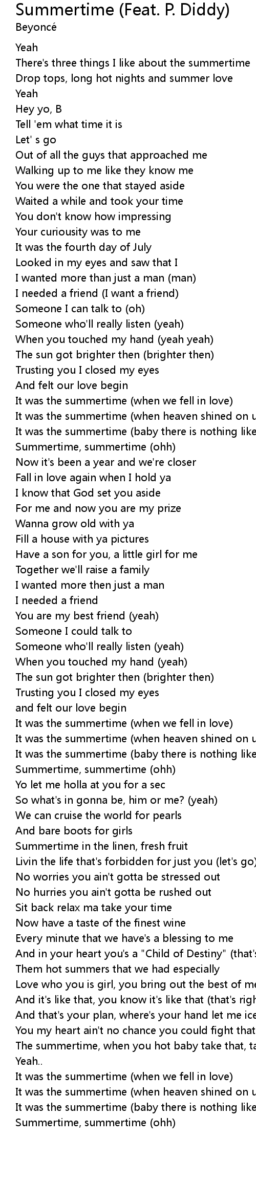Summertime (Feat. P. Diddy) Lyrics
