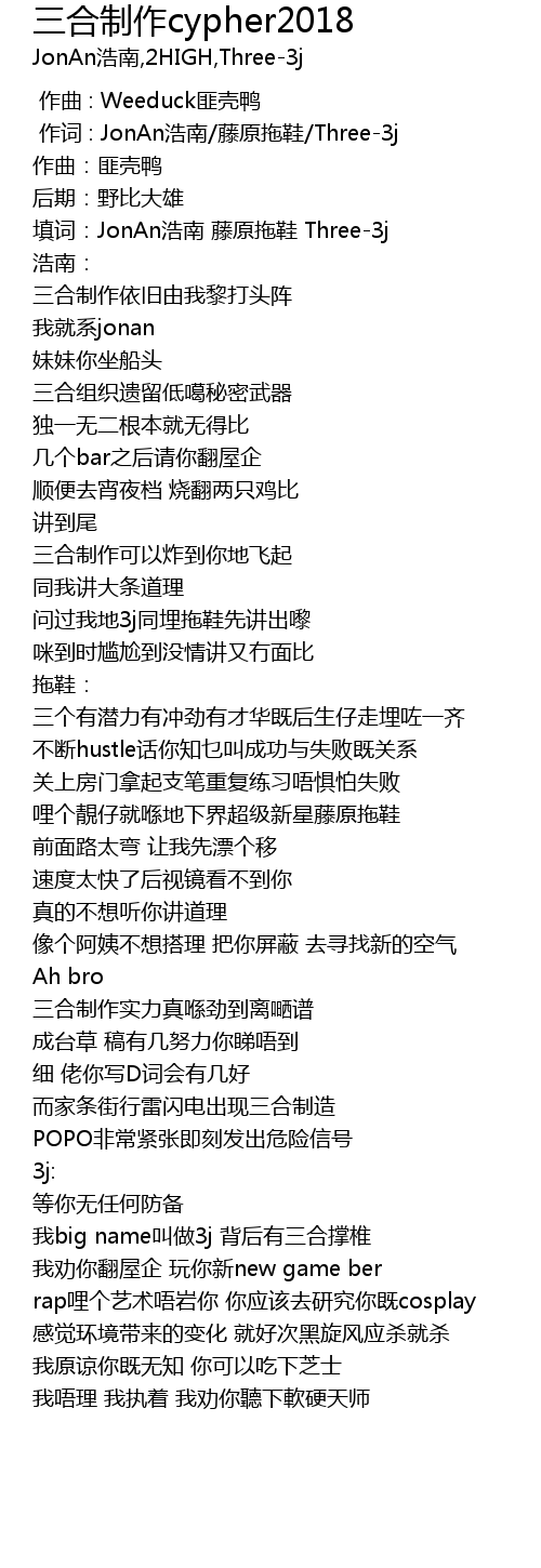 | [00:12.683] | 填词:JonAn浩南 藤原拖鞋 Three-3j |