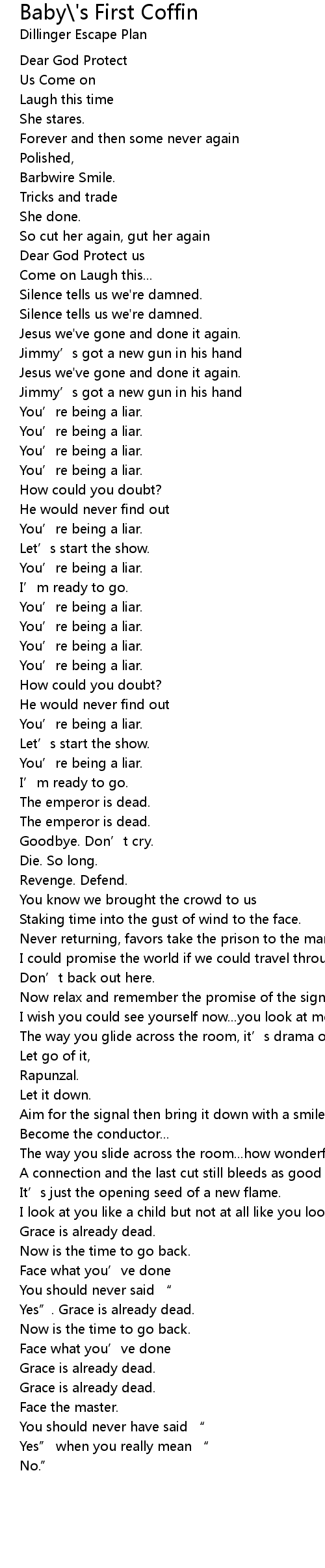 | Song | Baby\'s First Coffin |
