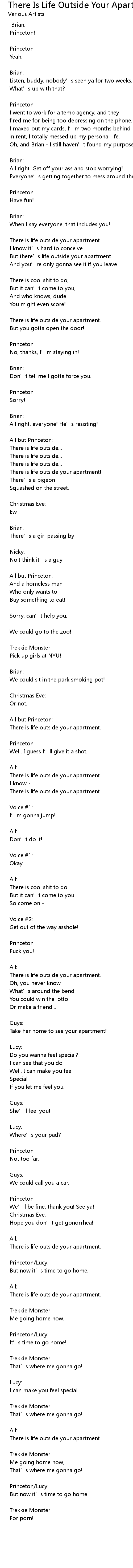 | Song | There Is Life Outside Your Apartment |