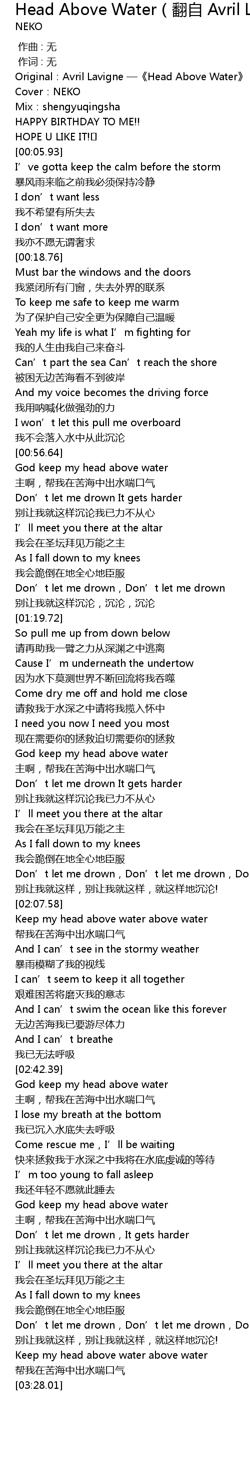 | [00:00.44] | Original: Avril Lavigne Head Above Water |