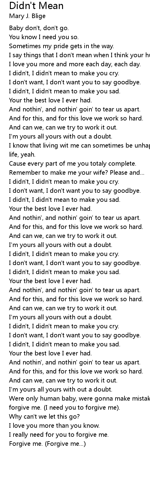 I say things that I don't mean when I think your hurting me. |