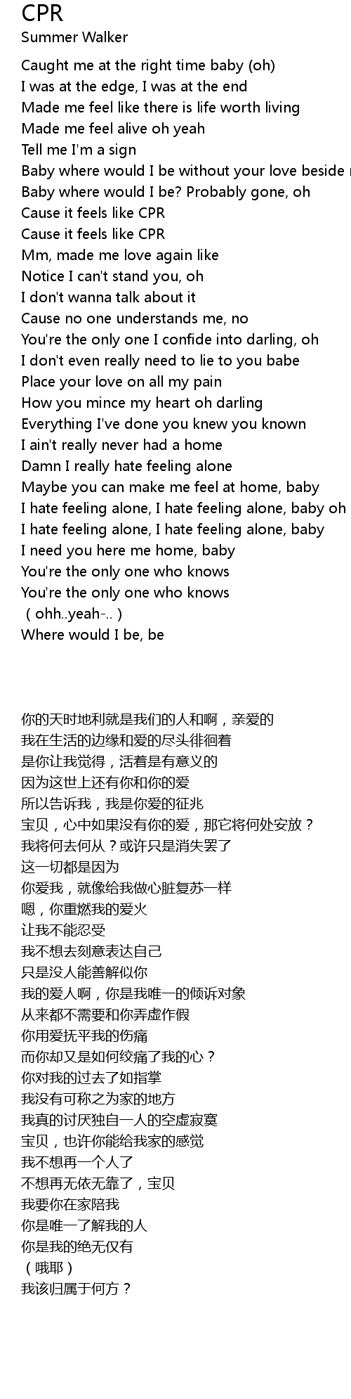 | [00:56.04] | Cause it feels like CPR |