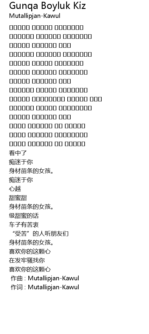 | [00:00.000] | 作词 : Mutallipjan-Kawul |
