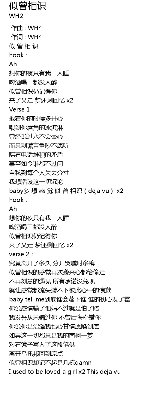 | [01:22.750] | baby多 想 感 觉 似 曾 相识(deja vu) x2 |