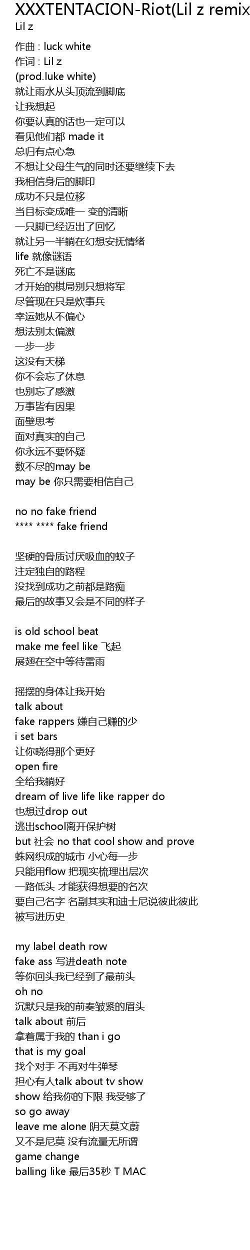 | Song | XXXTENTACION-Riot(Lil z remix)(Lil z remix) |