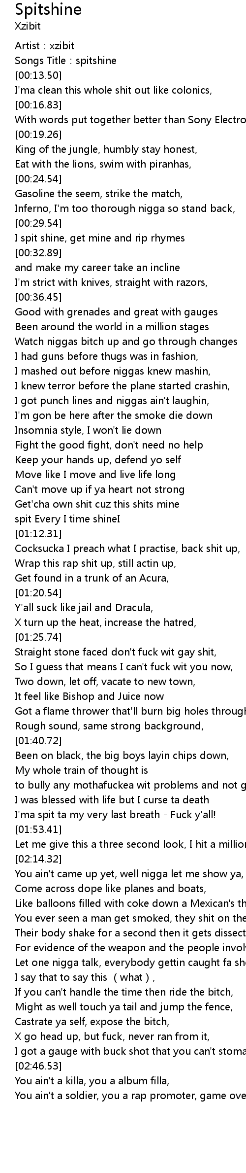 | [00:30.35] | I spit shine, get mine and rip rhymes |