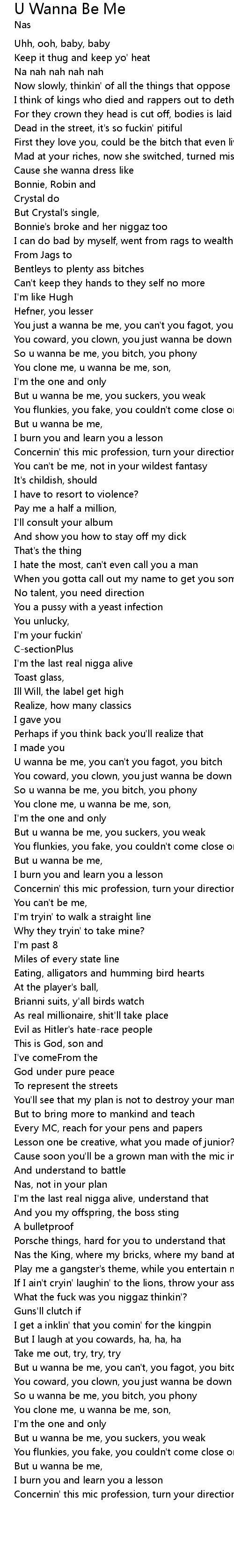 | You just a wanna be me, you can't you fagot, you bitch | |