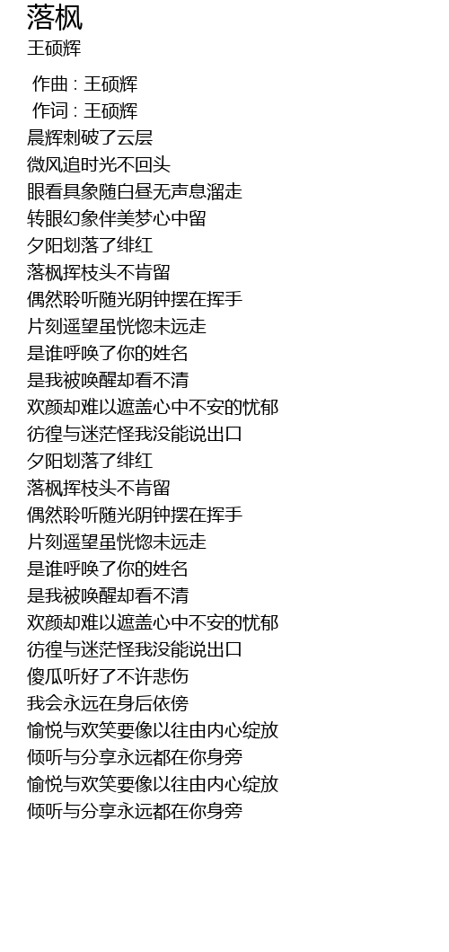 | [00:01.000] | 作词 : 王硕辉 |