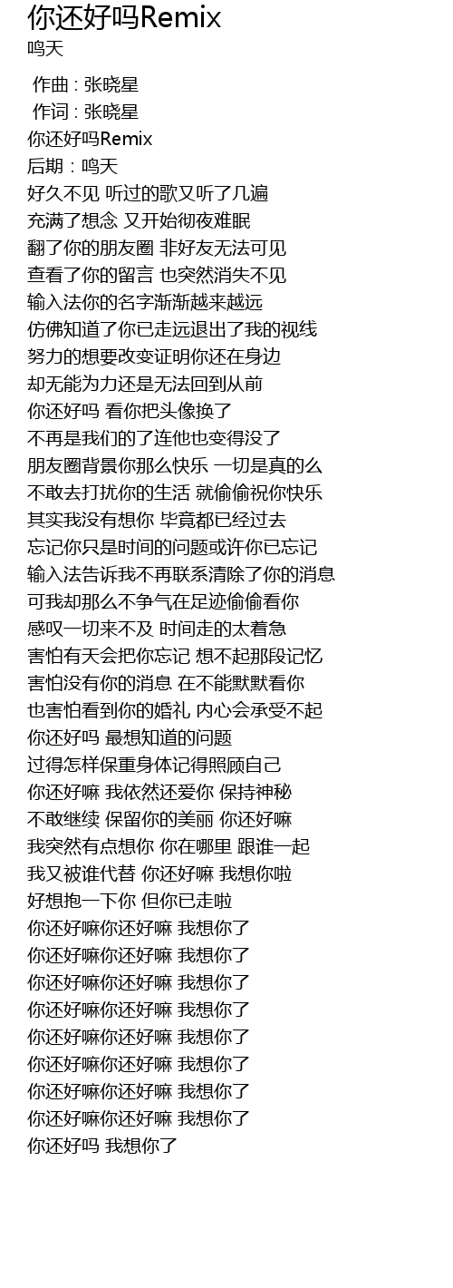 | [00:03.34] | nǐ hái hǎo ma Remix |