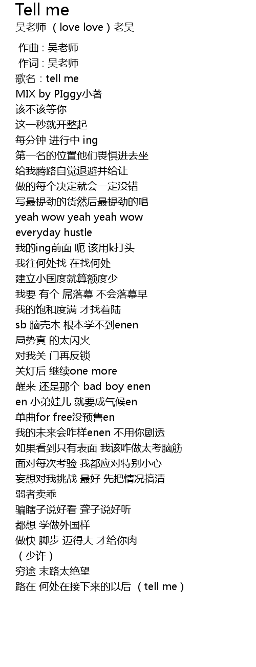 | [00:01.000] | 作词 : 吴老师 |