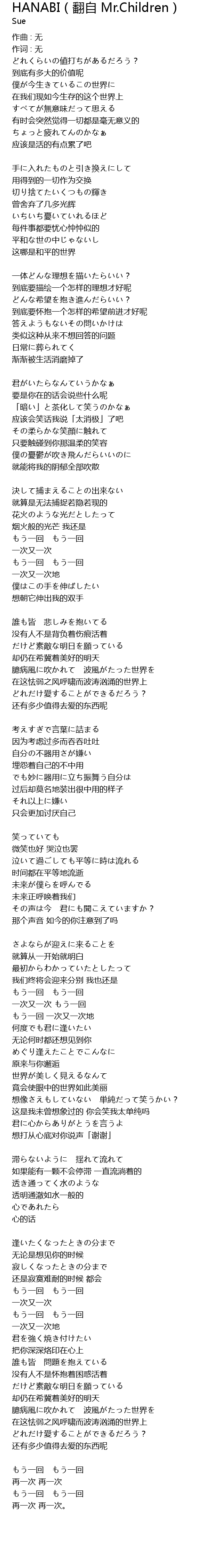 | Song | HANABI(翻自 Mr.Children) |