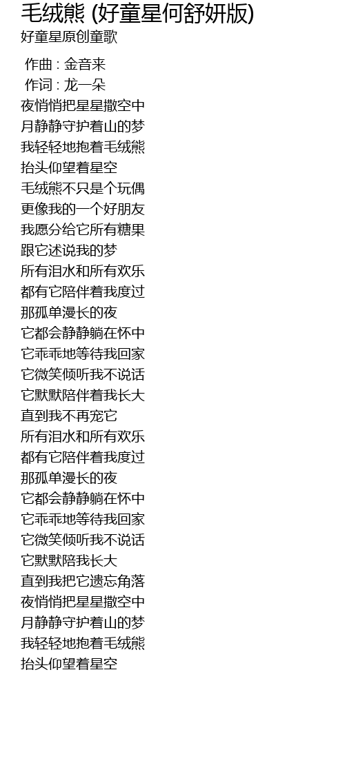 | Song | 毛绒熊 (好童星何舒妍版) |