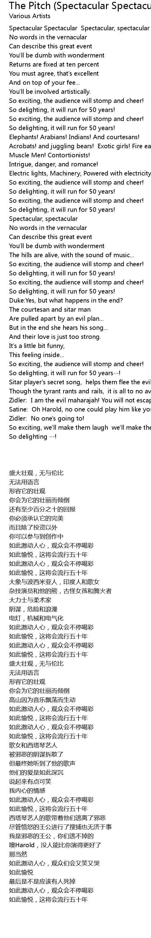 | Spectacular Spectacular Spectacular, spectacular | |