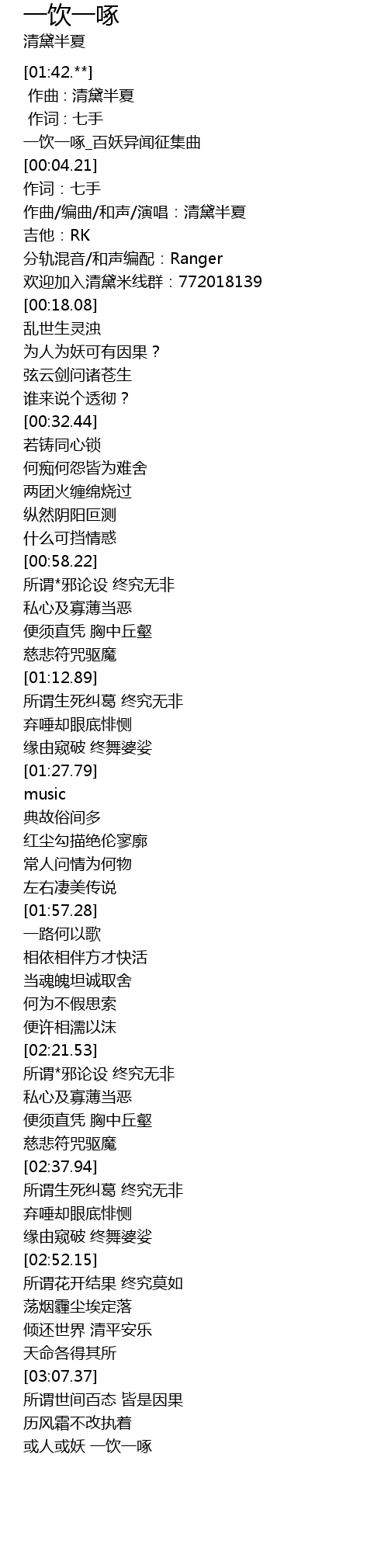 | [00:02.56] | 一饮一啄_百妖异闻征集曲 |