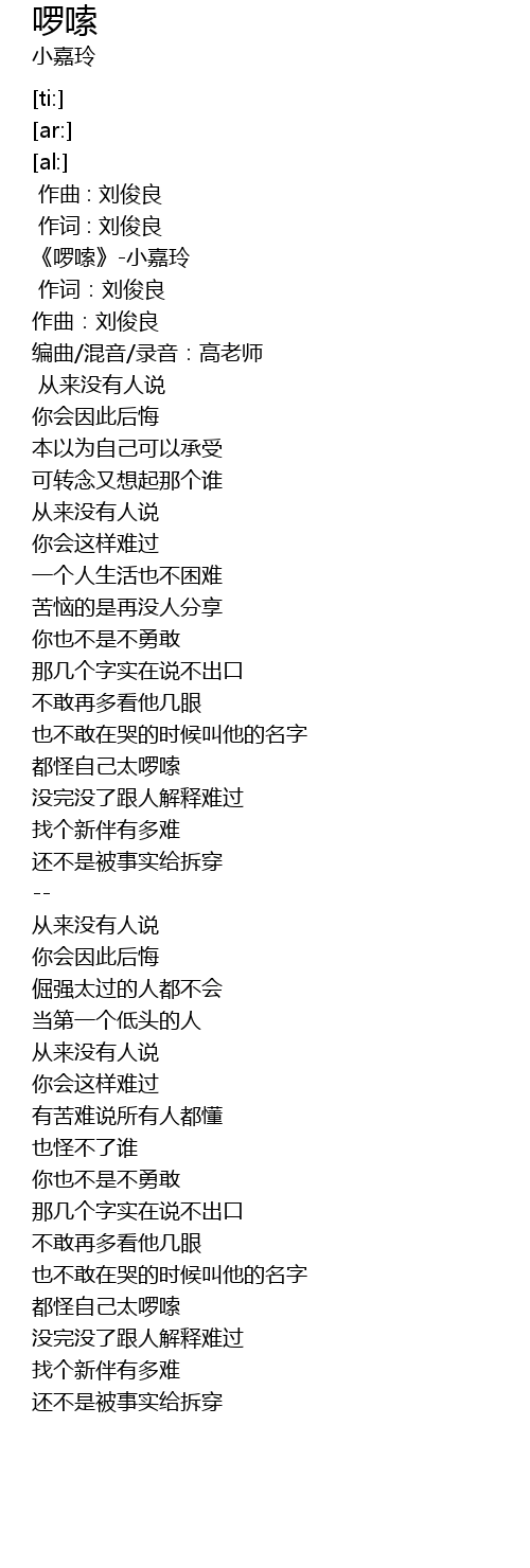 | [00:00.74] | 《啰嗦》-小嘉玲 |