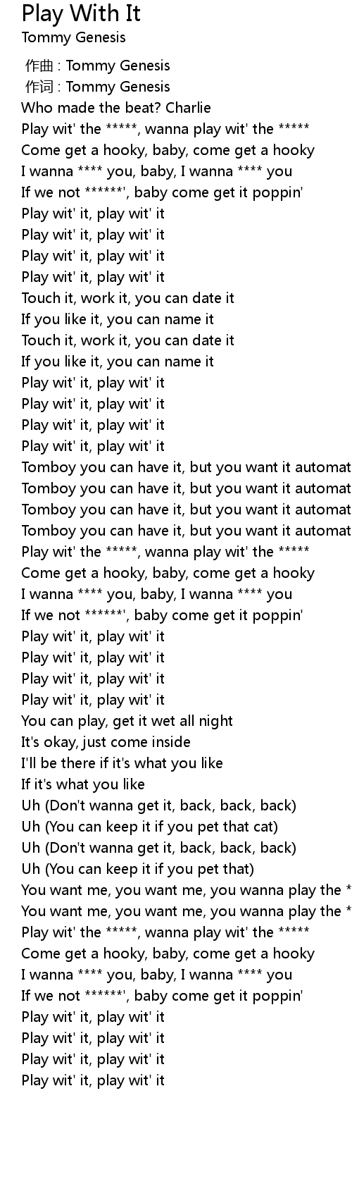 | [01:42.93] | Play wit' the *****, wanna play wit' the ***** |