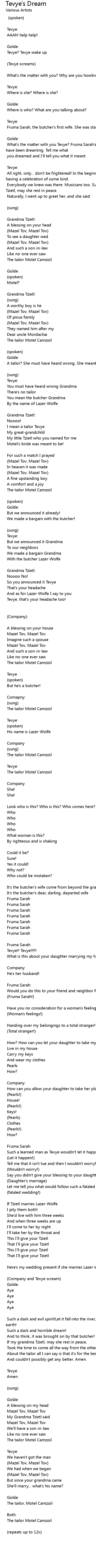 Tevye's Dream Lyrics