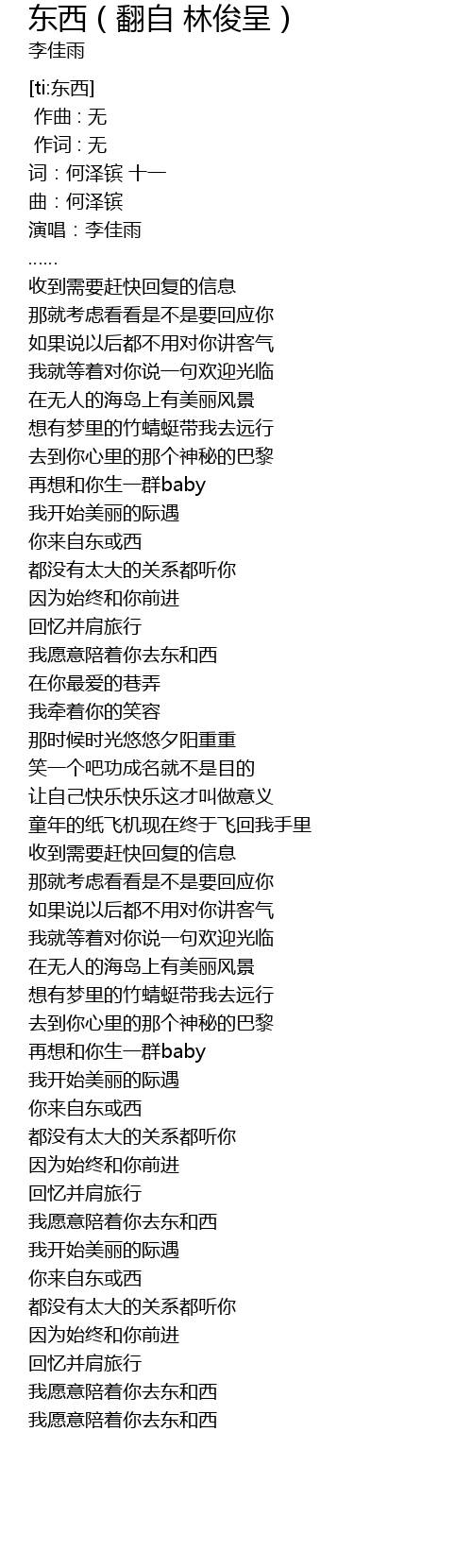 | [01:59.66] | 我愿意陪着你去东和西 |