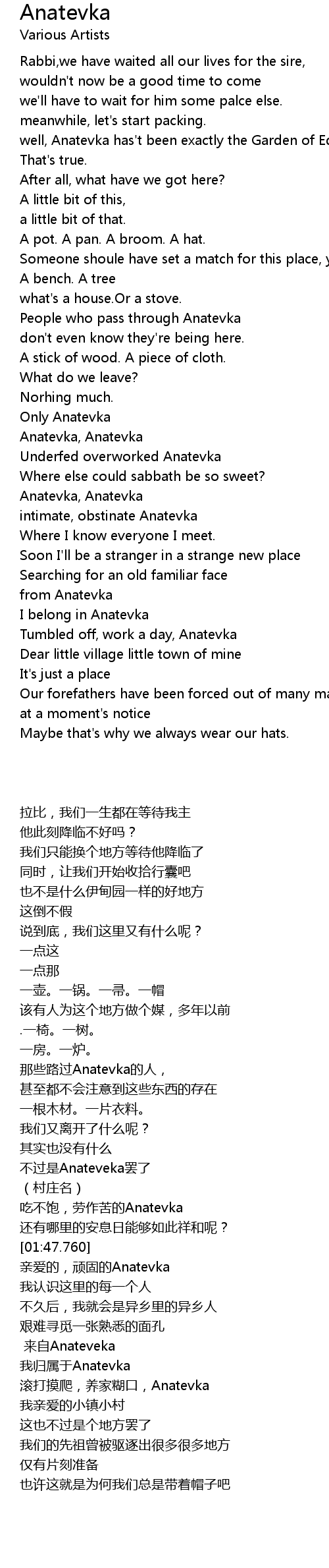 well, Anatevka has't been exactly the Garden of Eden. Anatevka |