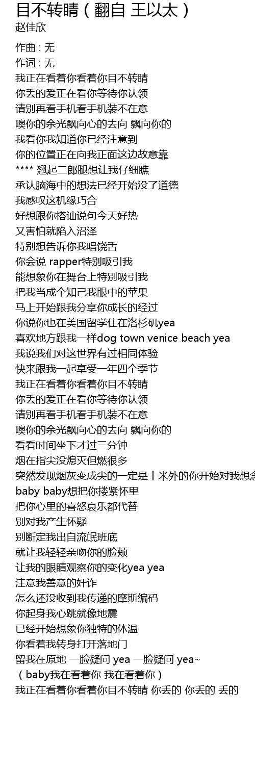| 我正在看着你看着你目不转睛 你丢的 你丢的 丢的 |