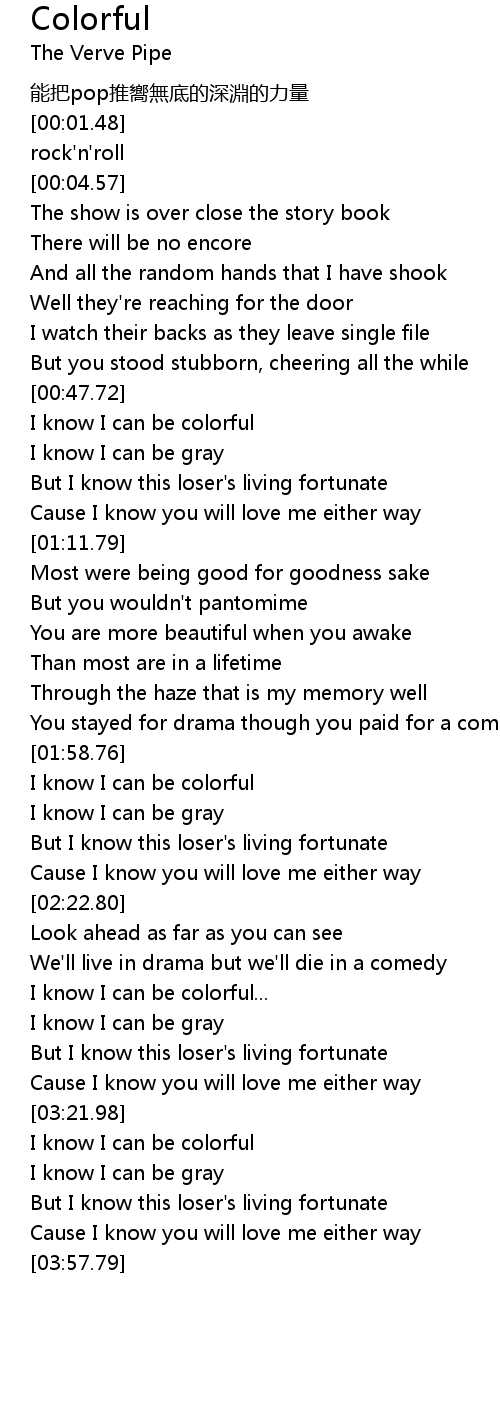 | [02:52.32] | We'll live in drama but we'll die in a comedy |