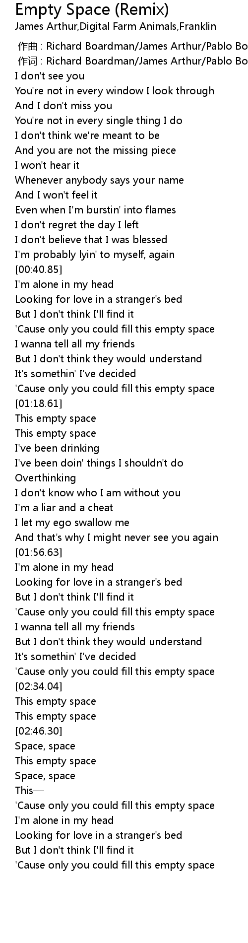 | [00:54.25] | ' Cause only you could fill this empty space |