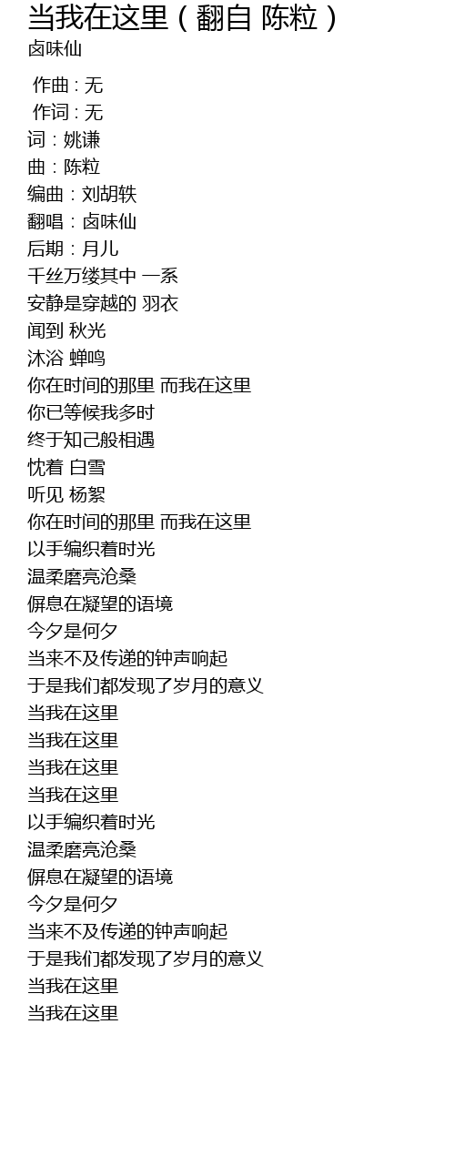 | [02:34.76] | dāng wǒ zài zhè lǐ |