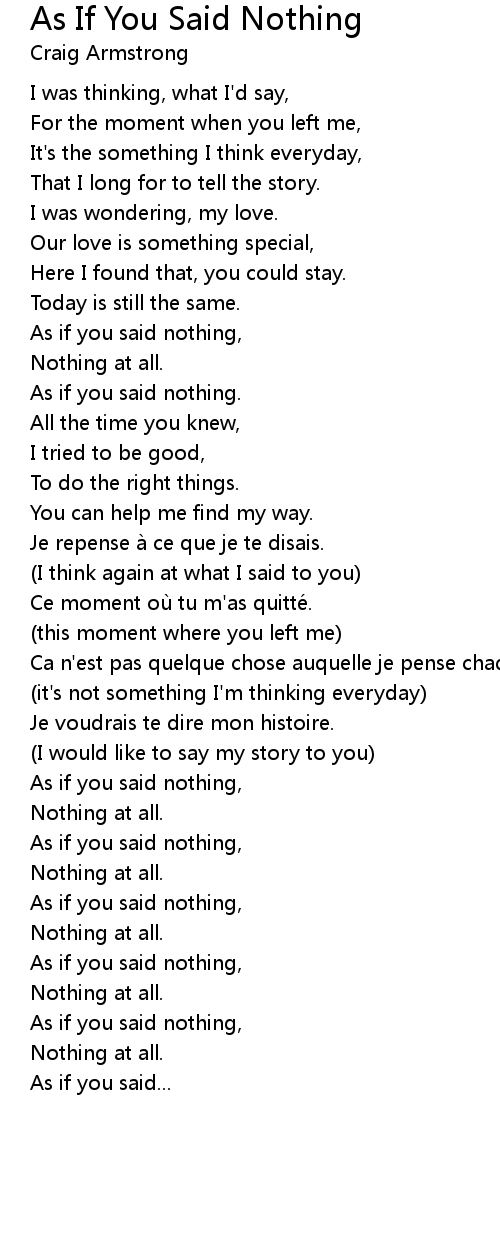 | As if you said nothing, | |