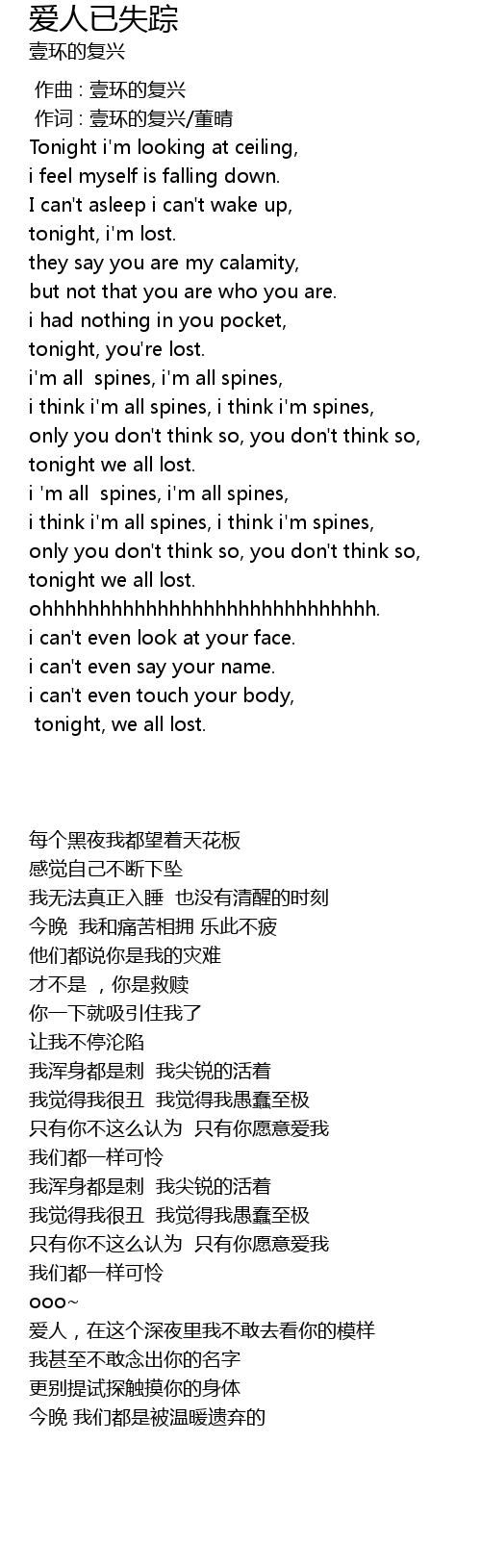 | [00:01.000] | 作词 : 壹环的复兴/董晴 |