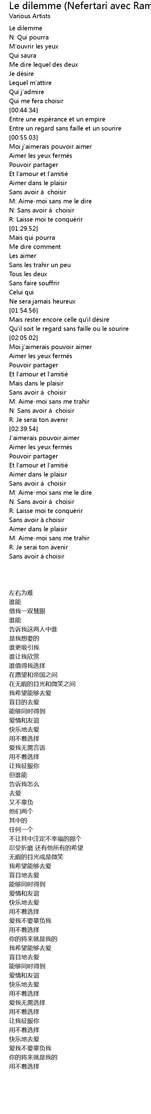 | Song | Le dilemme (Nefertari avec Ramses et Moise) |