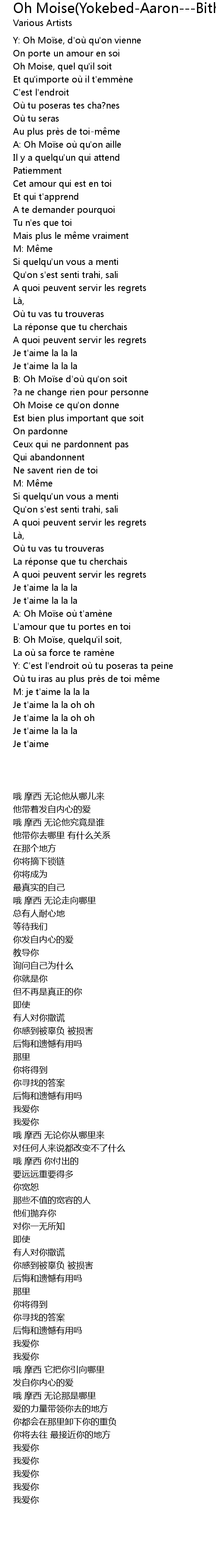 | [00:32.16] | Y: Oh Moïse, d'où qu'on vienne |