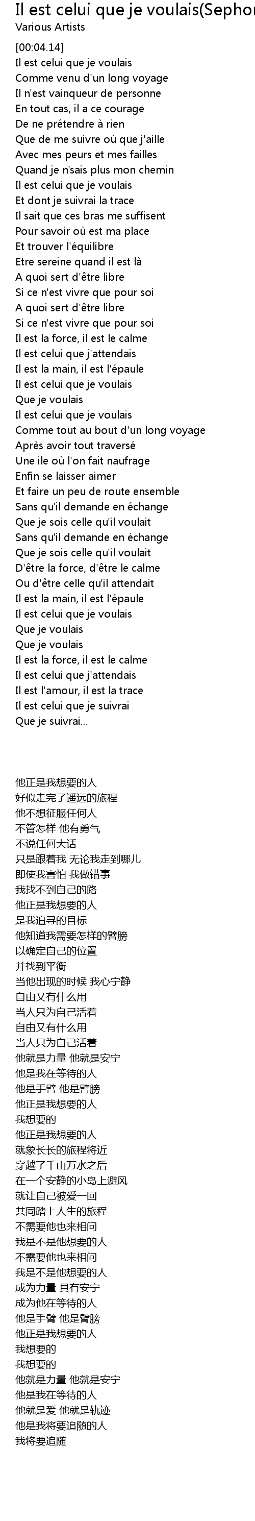 | [01:51.74] | Il est celui que je voulais |