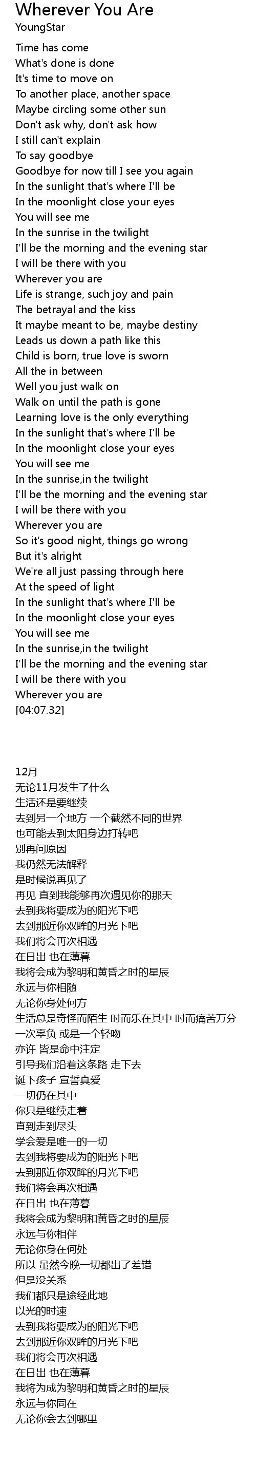 | [03:59.94] | Wherever you are |