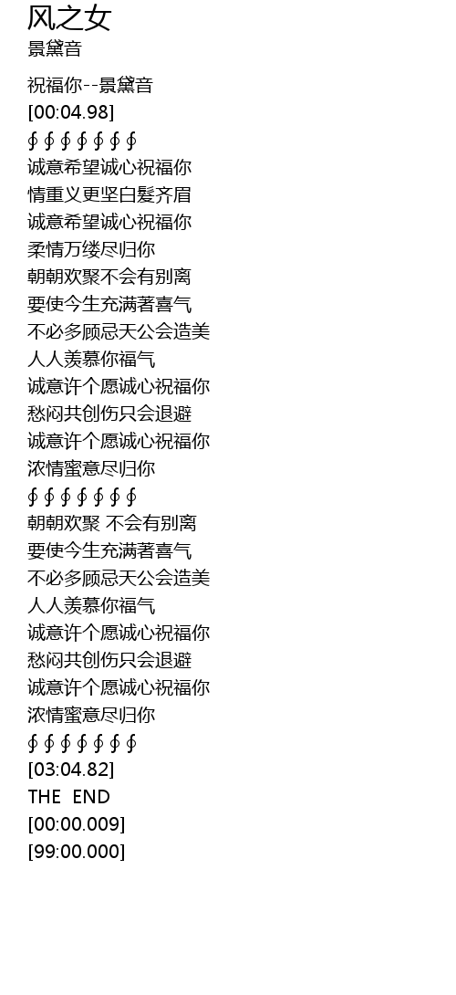 | [00:00.80] | zhù fú nǐ jǐng dài yīn |