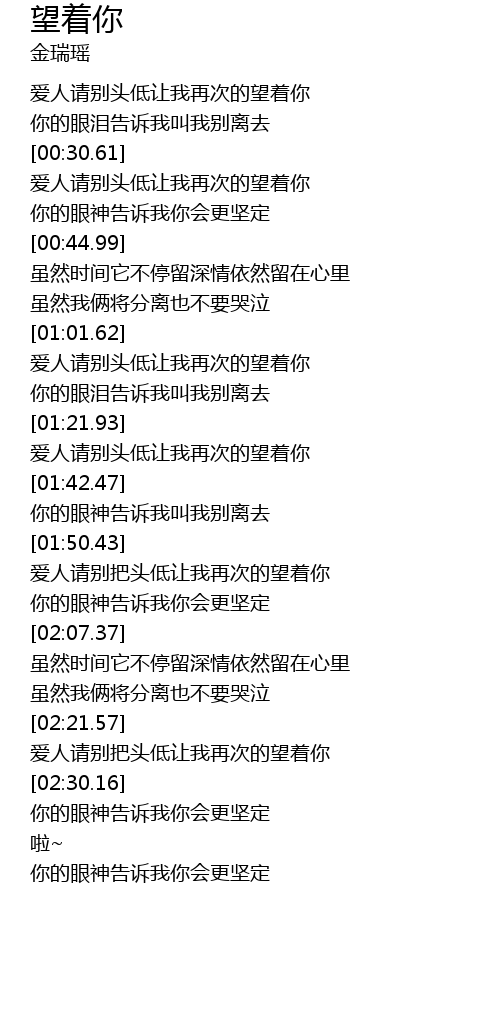 | [02:24.20] | 爱人请别把头低让我再次的望着你 |