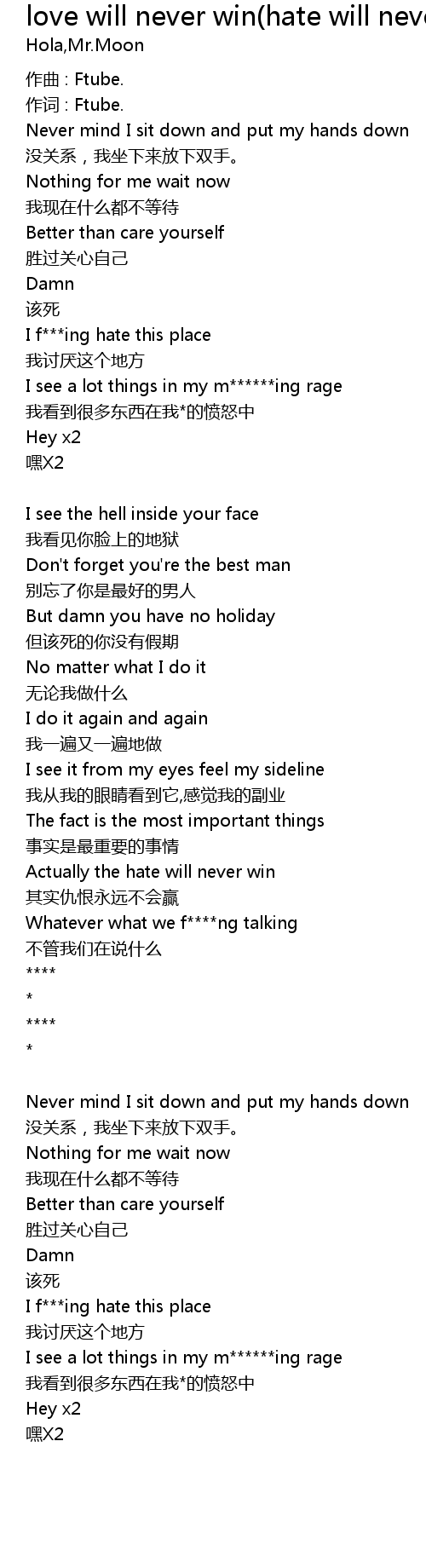 | qí shí chóu hèn yǒng yuǎn bú huì yíng | |