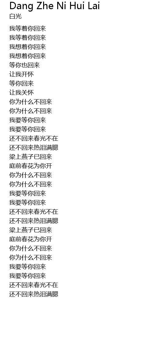 | [00:28] | wǒ xiǎng zhe nǐ huí lái |
