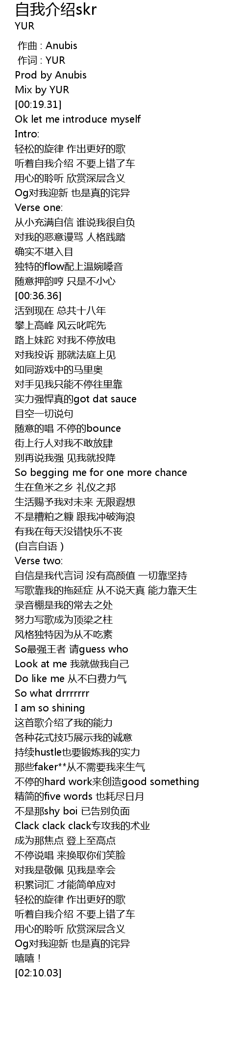 | [00:06.60] | Mix by YUR |